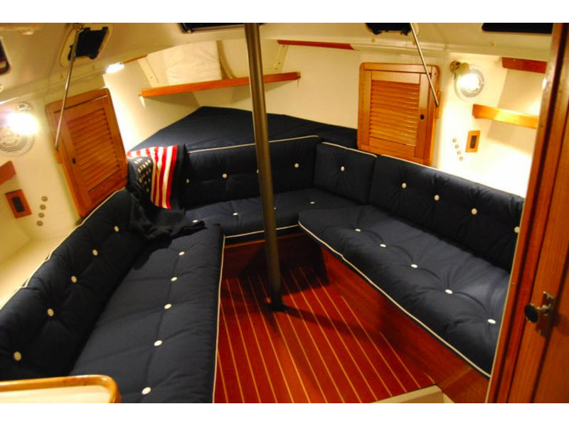 Accommodations Comfort & Interior Updated interior with blue-and-white Sunbrella custom upholstery throughout cabin. Brand-new Catalina Direct cushions for entire cockpit.