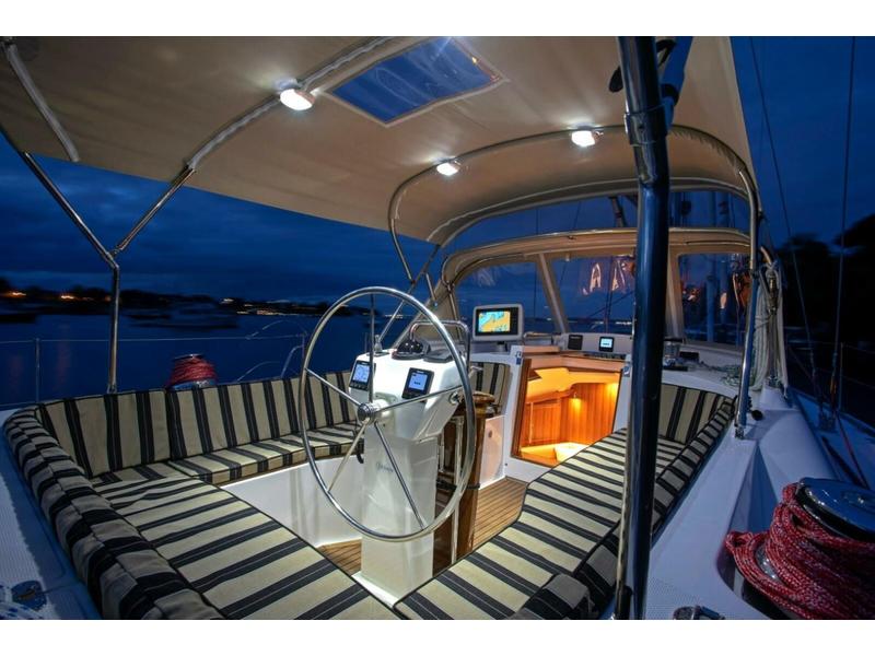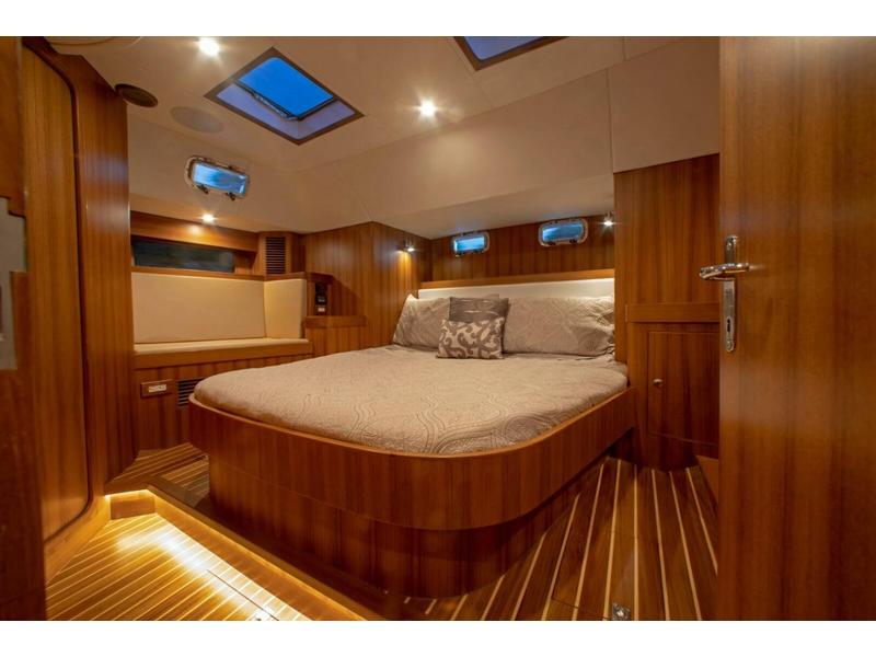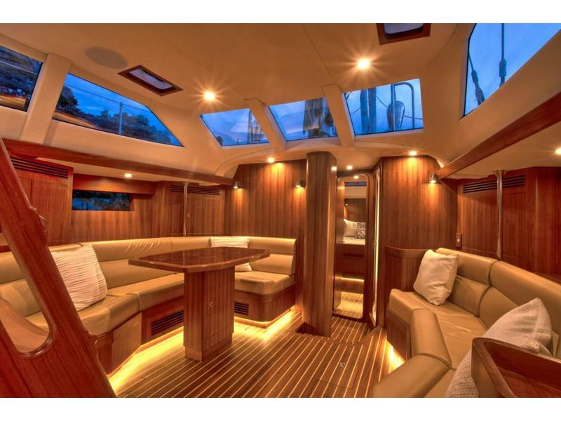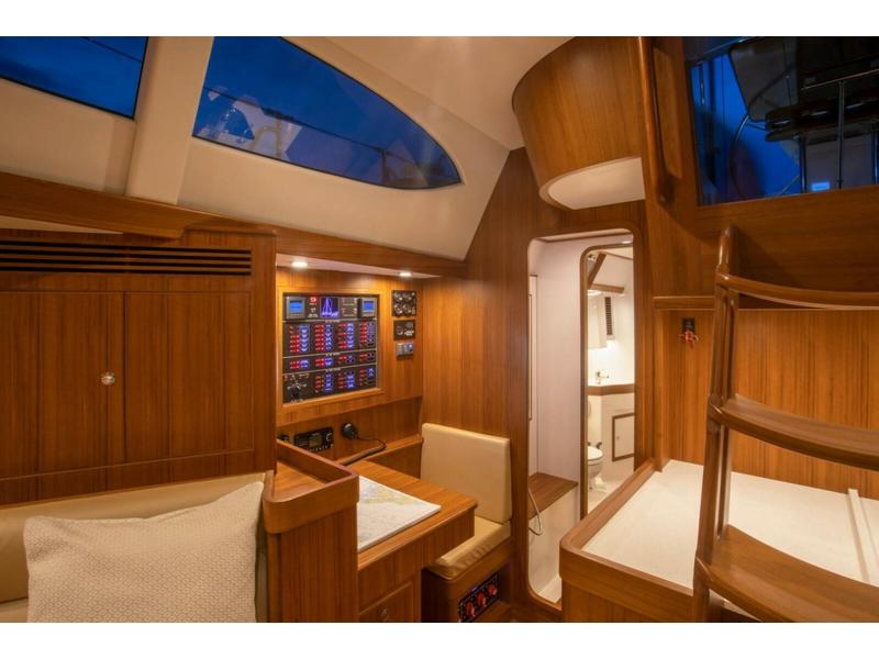 Living aboard is a delight with the raised salon skylights allowing plenty of natural light and the oversized portlights mean you're never disconnected from the world you want to explore. The walk-through galley offers storage, ease of use and safety underway. In the master stateroom every cubic inch has been utilized to provide a comfortable living space more often found on much larger yachts. The aft area being the most comfortable under way. A very important consideration for the long passages and sleeping comfort.