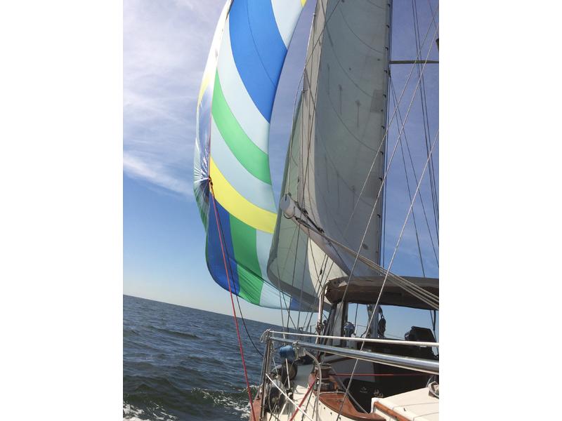 Harken furler, 140% genoa (2009), 80% working jib (1998), storm jib (1998), mizzen, gennaker