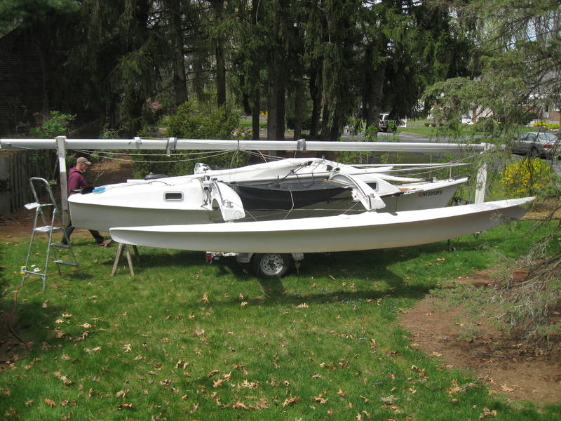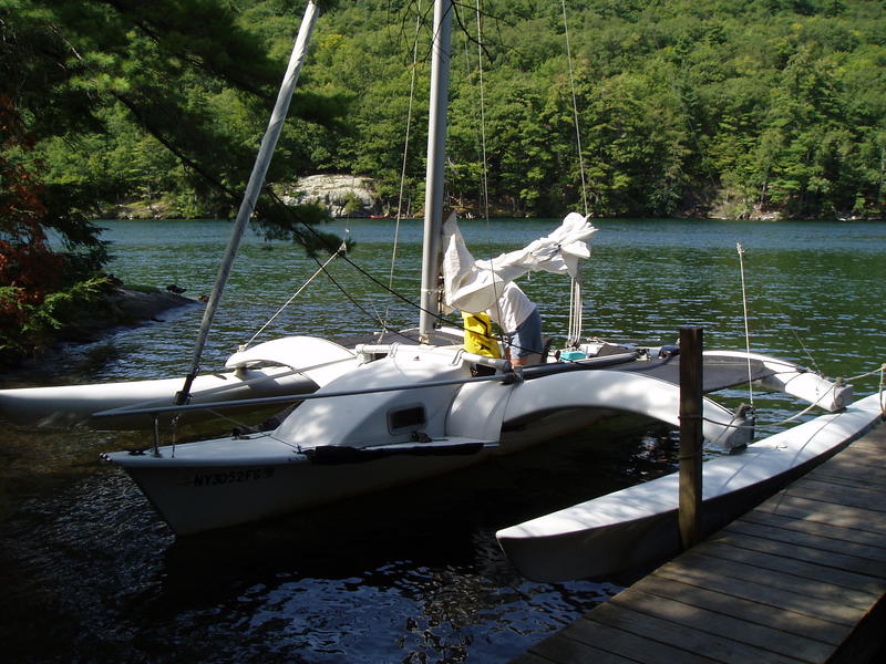 This Tremolino folding/swing wing trimaran is in very good condition. Ready to sail.