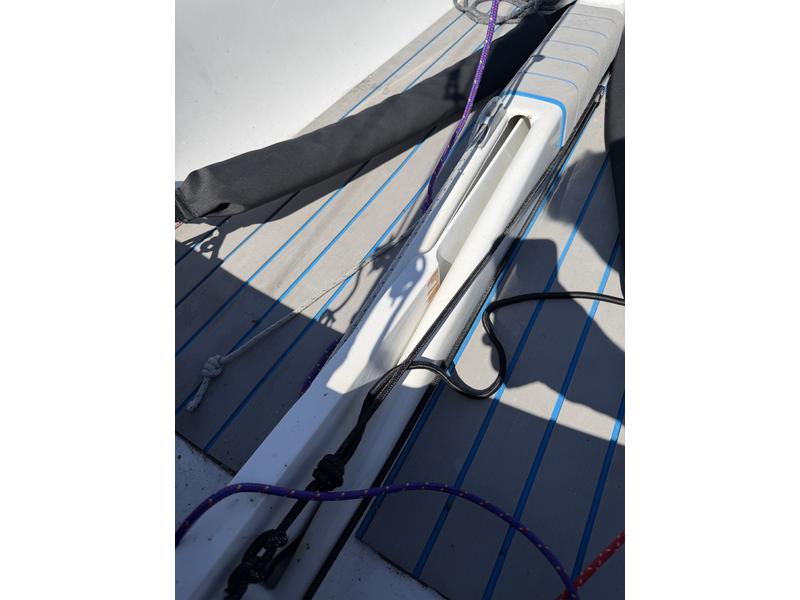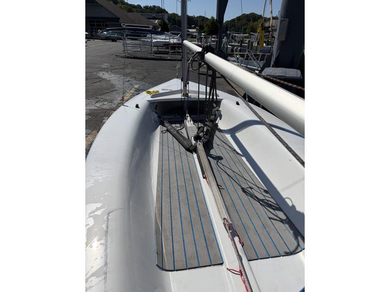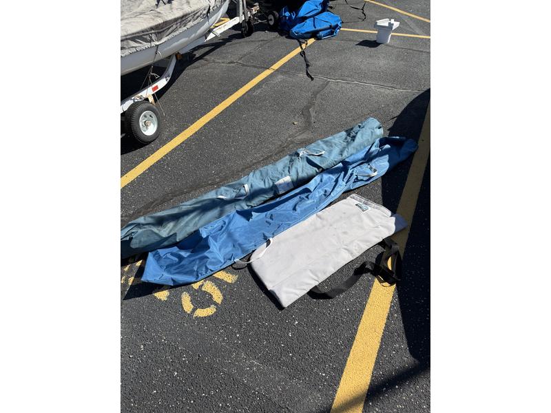 1997 Hunter JY15. Well-kept boat previously used for Womens Thursday night racing at MBYC. 1-2 soft spots on the top side of the hull, no cracks in the hull. It is stored inside a barn and storage units during winter. Minor scratches on the underside of the hull. Lines are new in 2023. Includes: Two sets of sails (Jib and main, one racing set, one practice set) Deck cover Dolly Trailer (all lights working) Extra hardware (drain plugs, pins, pins, etc.) New set of shrouds/side stays Rudder bag Extra tiller extension Extra hiking strap Two extra main sheet cleats Two extra deck cover straps |