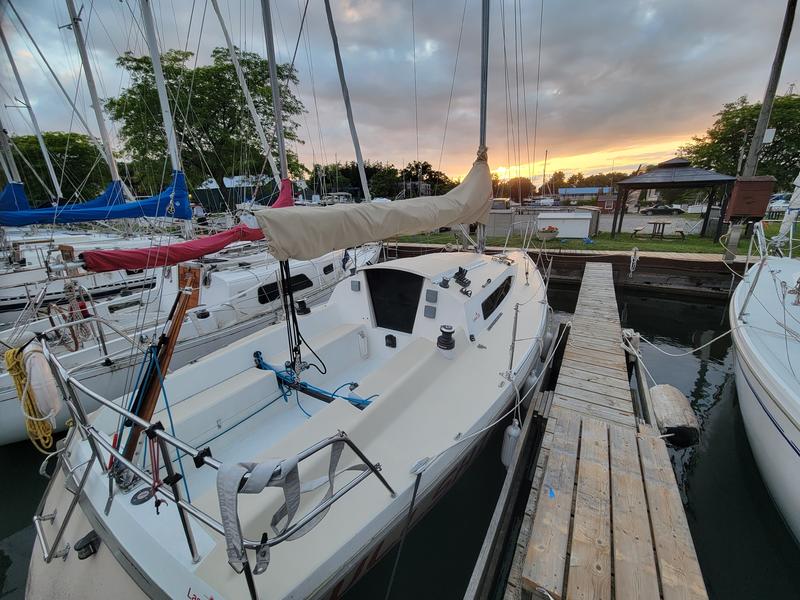Interior and accommodation Berths: Sleeps up to four people, with a V-berth and a convertible dinette Head: One enclosed head with a marine toilet Galley: Features an icebox and a two-burner alcohol stove Headroom: Standing headroom |
