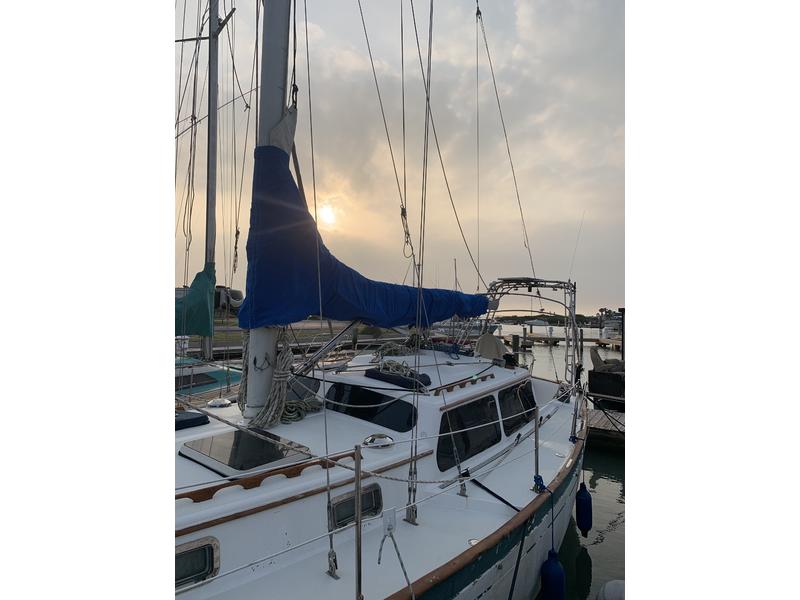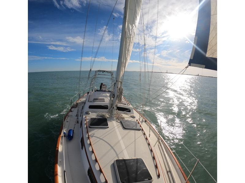 The Vessel ANDROMEDA is a 1984 Robert Perry Design Islander 38C sailing vessel. Vessel is molded fiberglass construction and is powered by a 4-cylinder Yanmar diesel engine. Aluminum mast, double spreaders and boom. Stainless steel standing riggings with stainless steel fittings. Aft cockpit with steering wheel. The vessel topside is glossy white gel-coat finish and her bottom is painted green. Boston Whaler 9 Dinghy hoisted at the stern. All pedestal controls, steering wire, pulleys, chain replaced 2024 New prop shaft, reconditioned 3 blade prop, cutlass, bearings, PSS and couplers replaced 2025 Last haulout and bottom job 2025 All thru hull fittings replaced 2022 Bimini, stainless arch tower with solar panel, Sunbrella covers for all cushions. |