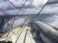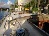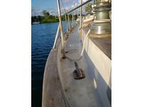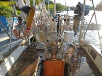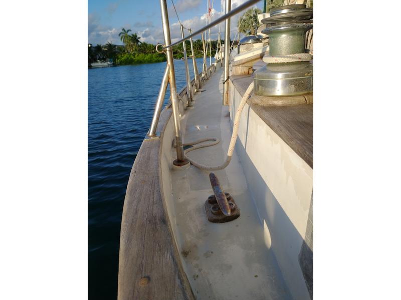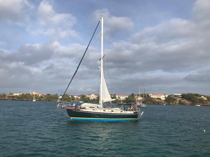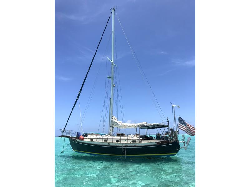 Mast- 57 bridge clearance. Keel stepped. Removed, Sanded/painted, stepped 2020. New VHF antenna 2020, lightning deflector, radar reflector, Windex, Raymarine wind instruments. Steering- Edson steering pedestal, replaced aluminum base with SS, and nice teak wine-glass shaped cover. Helm removed, stored onboard. I have preferred using the tiller and it works better with the windvane. Standing Rigging- All new oversized 1x19 SS rigging 2020 and whiskers 2024, forestay 2012. Running Rigging- New halyards 2017, sheets serviceable, extendable aluminum whisker pole. Chainplates- All replaced. 3 new SS 2017, 4 new SS 2020. Knees- 3 replaced, 4 original and will need to be replaced. Bowsprit- New 2020 made from one solid piece of something called Cobacolly (Guyanese hardwood). Sails- 2 mains, 2 jibs (1 roller furling, 1 hank-on), 2 staysails, 1 riding/stormsail. One main and one staysail are ripped, but usable with a double reef. Roller furling- Harken Cruising II on forestay, 2012. Tanks- 2 water, 2 fuel, 2 propane (Water: 65G SS New 2020/38G SS; Fuel: 45G/20G, Al 2015, Range 400NM at 5kts). 15G original holding tank serviced and with hoses and fittings, including pickup standpipe, 2025. Bilge pumps- 500GPH bilge pump with float at bottom of bilge, 2000GPH backup pump higher up. Manual gusher pump by the mast. Engine- 2005 Yanmar 3JH4E, 39HP, 0.8GPH at max rated RPM. Removed and serviced, painted, new raw water hoses, exhaust, and engine mounts, reinstalled 2025. Ground Tackle- Plow and Bruce anchor with 120 chain. Manual windlass onboard, not installed. Running gear- 3-bladed bronze prop and SS Shaft in good condition. Cutlass bearing 2015. Autopilots- Raymarine Smartpilot; Monitor Windvane installed 2019. Electrical- 2 Wet-cell group D batteries, 2019 and 2020. Original Tayana breaker panel, battery switch and isolator. 1500W 120v 60hz Heart Interface inverter/battery charger. Small separate inverter in Nav station. 200W solar. Lights- Anchor, tri-color, spreader, side-lights/stern light, and cabin lights are all LED. Also a halogen deck light, 12v LED portable bronze spotlight. Incandescent masthead light. Bimini/Dodger- Made in 2013. Still good for shade, not anymore for liquid sunshine. Dodger cloudy. Water Pump- Auto-shutoff pressure pump. Stove- New 2023 4-burner SS Force10 with oven. Refrigeration- Alder-Barbour Super Cold Machine. Compressor and evaporator good. Copper tubing has a leak on the low pressure side at the connection to the compressor manifold. Water heater- 6G 110v heater, also heated through engine heat exchanger. Cabin Heat exchanger- Uses hot engine coolant through a radiator with a fan behind it to warm the cabin. Dickinson diesel heater- Never used. Never even tried. I love the tropics. Navigation- Ritchie compass mounted on pedestal. Electronics- All old, and could use a complete upgrade, but Navionics on a handheld device does the job. Furuno Radar, old but works. I-COM HF Radio with tuner, powers on but not installed. Mounted VHF Radio works well. and flares (out of date, not required), strobe and orange distress flag for CG signaling compliance in place of flares, manual horn. Paddleboard with paddle- Hard paddle board and new paddle, with SS deck mounts, included. A great way to get to shore when the dink is on deck. Dinghy/outboard- 2011 9 Caribe RIB with FL Title, 2012 6hp Yamaha. Both included. Dinghy needs small patch on bow and engine needs service for shifter. |