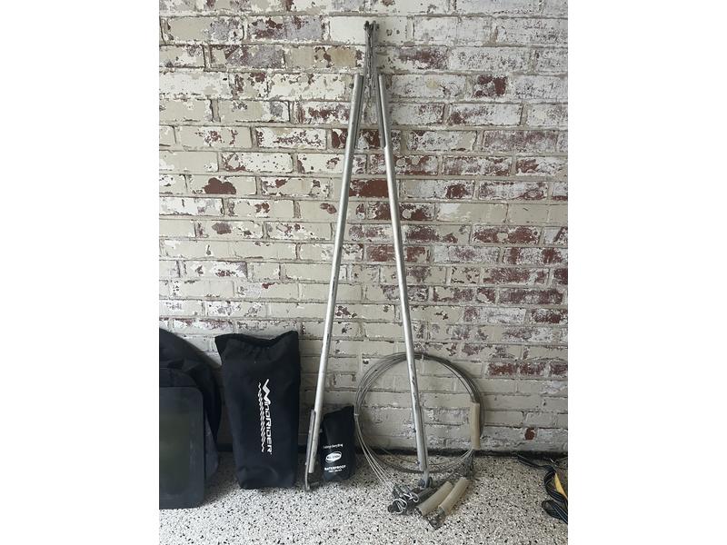 Manual bilge pump. Factory aluminum motor mount included. Price listed does not include a like-new 2024 Honda 2.3 hp, 4 stroke, short shaft outboard. Will sell separately or with the boat for $775. Built-in tank. Used once and stored indoors since. Roller furling jib. Includes an original tired but usable factory mainsail. Jib and tramps were replaced in 2020 and remain in excellent condition. Has custom jib sock in lieu of UV protected sail if you wish to leave the rig up. Serviceable but older running rigging. Boat Hook Adapters Windrider mast raising system West Marine pair of folding seats usable on tramps and in cock pits. Young Marine Rope Ladder for Inflatable Boat, Kayak, Motorboat, Canoeing (3 Step) WindRider Box Anchor-Folds Galvanized Steel for Boats up to 40ft Grey 2' by 5' Canoe/Kayak Sun Shade/Canopy by Cypress Rowe Outfitters others have made modifications to this shade for windriders. Not completed by us. |