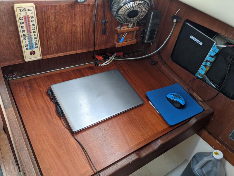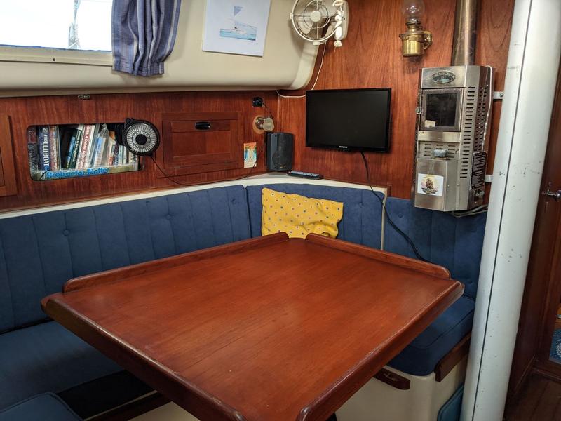 Navigation B&G 3G radar, depth sounder and electronics (2018) Standard Horizon VHF radio and AIS (2022) Simrad wheel pilot Aries windvane