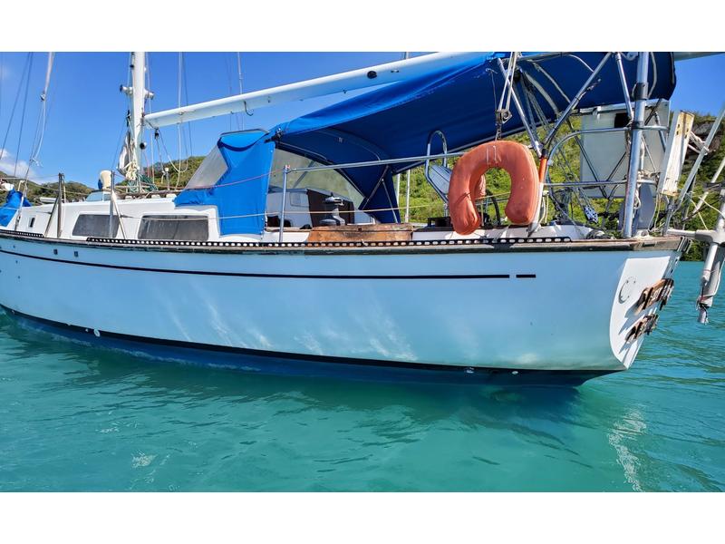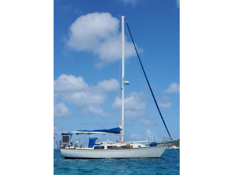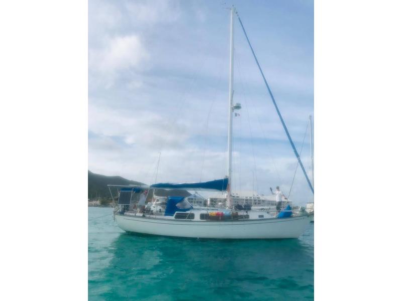 Ready to live the Caribbean dream? This classic Ted Brewer bluewater boat is well equipped and ready for offshore cruising anywhere in the world. This solid vessel has been regularly maintained, with many recent upgrades. The interior is spacious with standing head room throughout (6'2), and boasts many large windows to let in plenty of natural light, both rare features in a boat of this vintage. The cockpit offers plenty of seating for evening sundowners, while at sea it provides protection during spirited sails. With a hull speed of 6 knots, she is both fast and stout, fun yet safe. Canadian-built, the cutter-rigged Cabot 36 is consistently on lists of the best blue-water boats. She was made for the North Atlantic, but is perfectly at home in its current Caribbean location of sunny St. Martin.