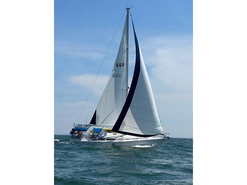 3 cabin 2 head pullman master berth wing keel version in excellent condition. 2 owner boat. Factory installed second fridge/freezer and extra fuel and water tankage (138 g.water, 55 g.diesel). Raymarine Axiom electronics suite and all electical equipment replaced 2019 inlcuding battery charger, all instruments, Raymarine below decks autopilot. New bimini and dodger, hatch covers, helm cover in 2018. In mast main and and 140 genoa appx. 12 years old in good condition, cleaned and serviced in 2024 including new UV border covers on both sails. Also have older 155 main and cruising chute with ATN gear and whisker pole (no blocks or lines for chute). All standing rigging and much running rigging new in 2023. New 2kw inverter, windlass and AIS in 2024. New 350 Watt solar on bimini in 2024 charges 2 8D house bank totaling 510 amp hours, separate starting battery. Folding wheel with leather cover 2024. All lights converted to LED 2024. Sarca Excel 48 pound anchor 2024 attached to 180 feet of anchor chain. New Fairclough winter cover 2024. New Sunbrella cockpit cushions with closed cell foam and 6 matching pillows new 2025. Ablative bottom paint 2025. Garhuaer crane to lift outboard (motor and dingy excluded).