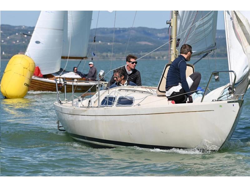 Genaraly Equipment: Mobile toilet (not used) Summer cover (used) bilge pump Proctor mast Light: top light, stern light and side lights mandatory equipment (powder extinguisher, life jackets (2023), anchor with 30 m rope)