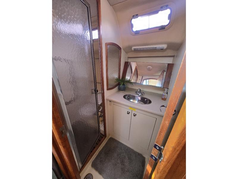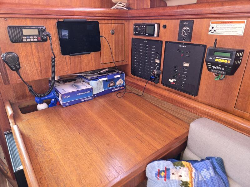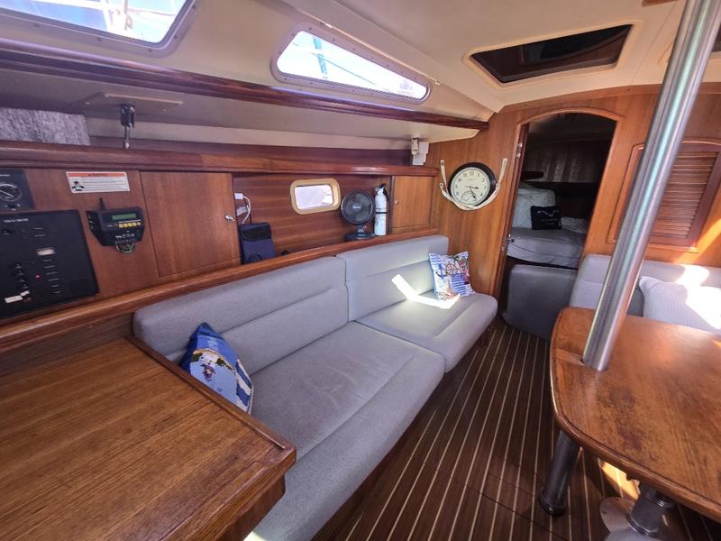 Interior Roomy and bright. Salon seating with dining table. Chart table with hide away seat. Galley with propane stove and oven. Refrigerator/freezer- DC Ice box. Large sink with pressure water. New hot water heater- 7 gal.- 2025 2 enclosed heads., roomy and bright Showers with shower sump Toilets with macerators 2 Mermaid Air cond/heat units. New control panel Fwd unit- 16,000btu- new 2023 Aft unit- 12,000btu- 2005 2 New circulating pumps- 2024 Aft cabin- roomy centerline mattress with storage throughout. Private access to head with shower. V-berth cabin- centerline mattress with lockers and drawers.