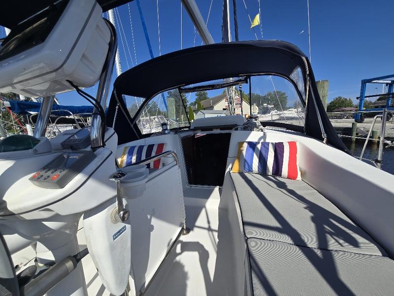 Electronics 2 Ritchie compass Garmin depth finder-2023 Raymarine radar Raymarine autopilot Garmin GPS/Chartplotter- 2023 Horizon- VHF Alpine stereo- 2022 Sails/canvas Main and genoa Dutchman Helm cover Schaefer roller furlingBimini with zip on sunscreen panelsDodger- frame onlyCanvas sunfly for cockpitNew custom winter cover- 2022- ($4400.) Outside seating cushions Exterior 2 wheels Lewmar winches #58 and #40 self tailing Swim platform Swim ladder Large cockpit storage with custom hanging storage bags Plow anchor #45 Fortress anchor FX23 lunch