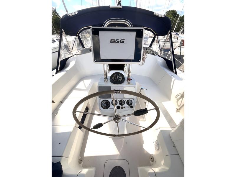Sails and Rigging Schaefer Roller Furling Genoa In-mast furling Mainsail Double Spreader Mast, Deck Stepped Masthead Light Anchor/Tri-Color Rigid Boom Vang All Lines Lead Aft To Cockpit (2) Harken 44 Primary 2sp Self Tail Winches (2) Harken 32 Main & Working 2sp Self Tail Winches (6) Line Sheet Stoppers Sheet Line Organizer Pouches Garhauer Traveler 4' 6" Wing Keel |