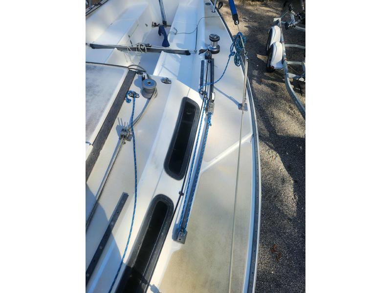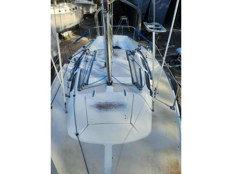 1981 Capri 25. Great boat for racing or just for family cruising, bunks for 4 people with moderate headroom. The boat comes with 2 mainsails (good condition) and 2 mylar furling genoas (one good, and one almost new, only used for a season) and a spinnaker. The boat has harken hardware throughout as well as a facnor continuous line furler for the genoa. There are no soft spots on the deck that I was able to find and the forestay was replaced last season. The boat has been well kept and has been an active racer and winner at our club for the last 15 plus years. It needs nothing but a new owner to have time to use it.