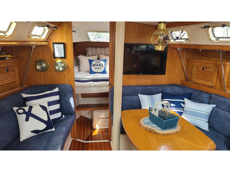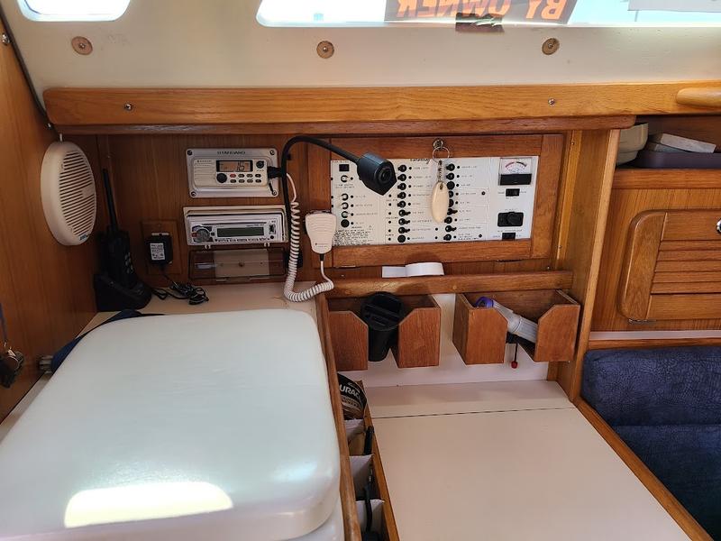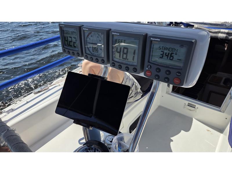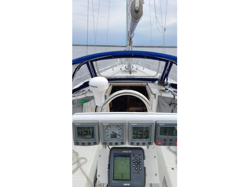 135% Furling Genoa Full Batton Main with Dutchman flaking Asymetrical Spinnaker 35 Hp Diesel Mostly new running rigging Cockpit cushions Raymarine wind, speed, depth and autopilot Garmin GPS 4 Batteries Dodger, Bimini, and plexiglass sides |