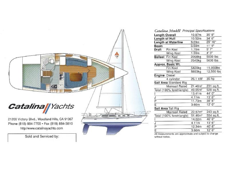 Nice, good condition, 1999 Catalina 34 Mark II. Fresh water boat, winter stored inside for at least 20 years. This has the desirable fin keel. Great and easy sailing boat. |