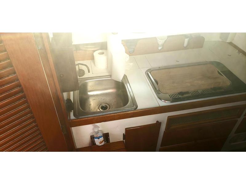 Galley Origo 2 burner alcohol, teak dish rack, cup holder