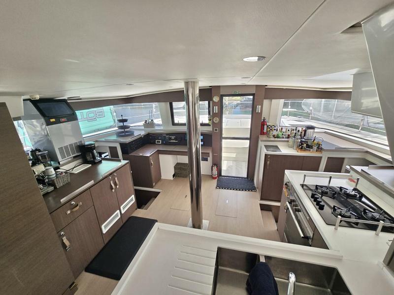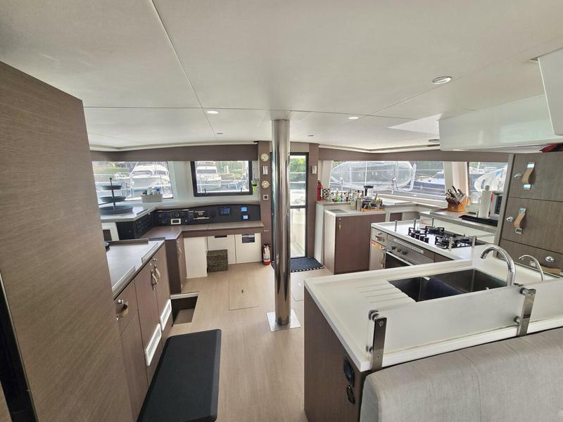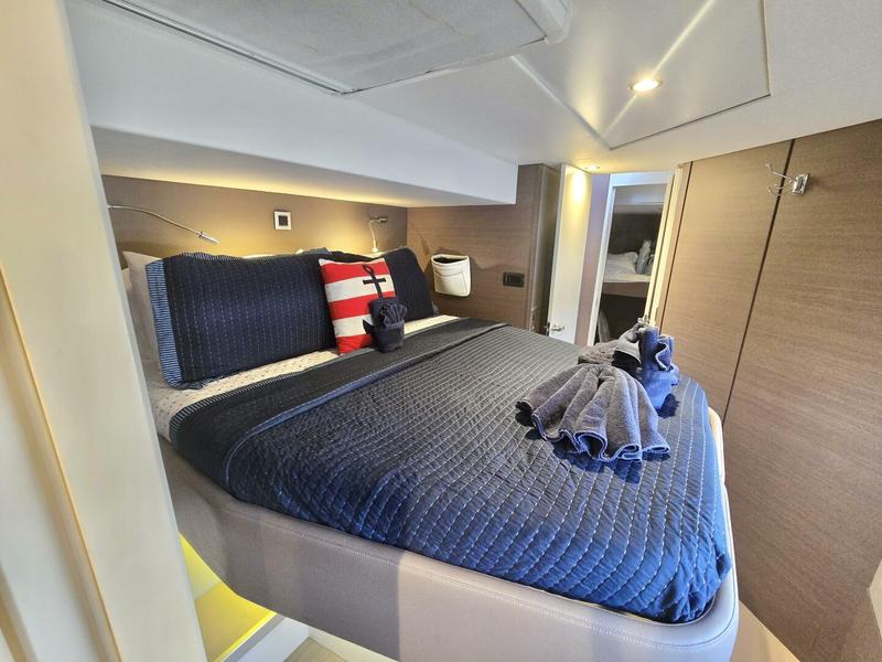 Engines Yanmar 4JH57 57hp diesels with SD60 saildrives, 17″ aluminum props (replaced Dec 2024), 2,580 hrs as of October 2025 Generator Onan Cummins 13.5kW MDKDK, 10,731 hrs (new heat exchanger & water pump March 2025) Full Air Conditioning Mabru (2) saloon units, 17,000 BTU & 10,000 BTU) Frigomar (4) cabins, incl. crew with reverse-cycle heating Water Sports Equipment Wakeboards, beginner wakeboard, tubes, snorkel sets, floating dock, glass-bottom kayak, buoyancy aids Charter Ready Complete linens (4 changeovers), full galleyware, cutlery, crockery, and safety equipment Electronics Package Raymarine suite with dual chartplotters (Axiom 12″ & Axiom 7″), autopilot (ST6001 ), AIS, VHF radios, EPIRB, and Starlink internet Tender/Dinghy Center-console dinghy with 40hp outboard, wakeboard-capable Hydraulic Bali Door Innovative aft lifting saloon door design, hydraulically assisted.  |
