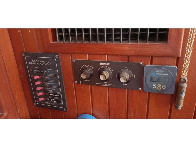 Electrics 12v - 110 power Solar Power 530 - watts one on aft 330 watts, 2 on bimini 104 watts each Marine Kinetics wind generator Reverse cycle air conditioning Hot or cold LED lighting throughout AGM batteries replaced in 2024 ( approx 2.5 years old)