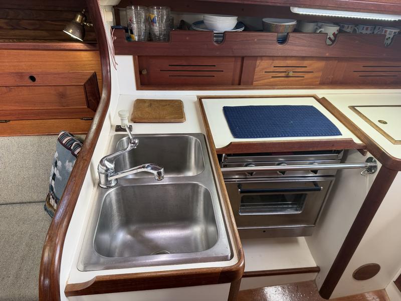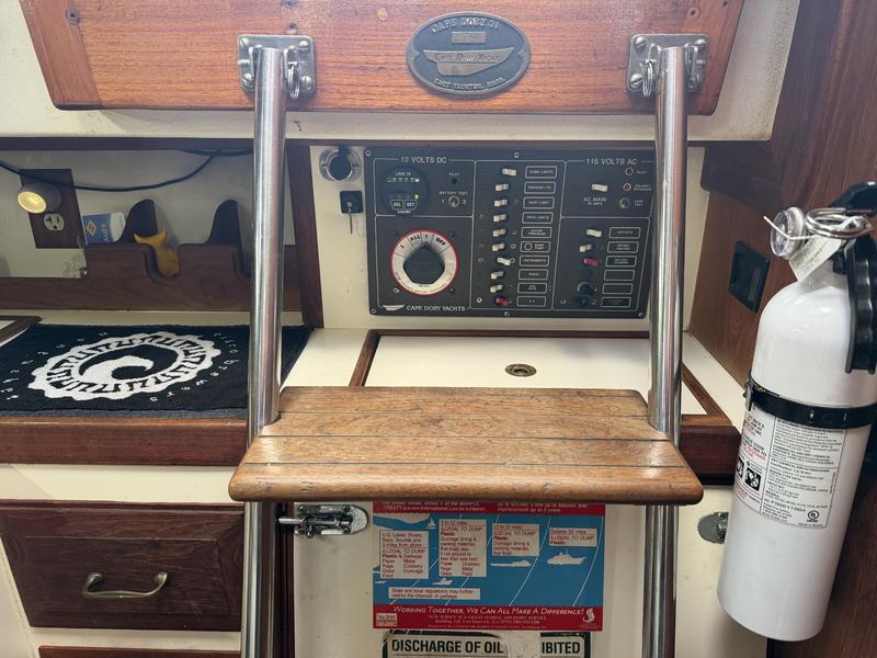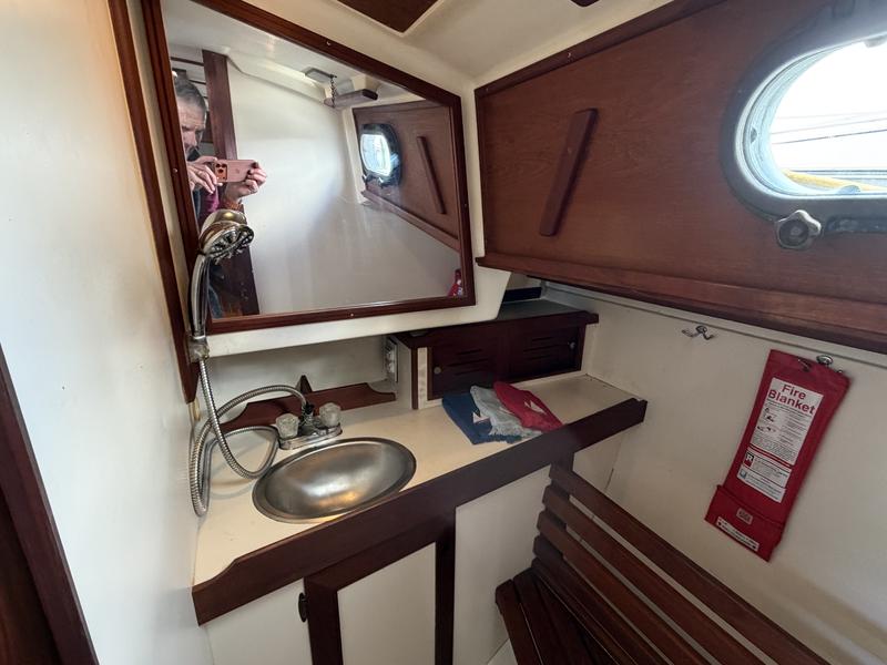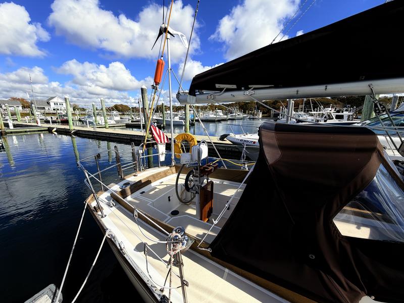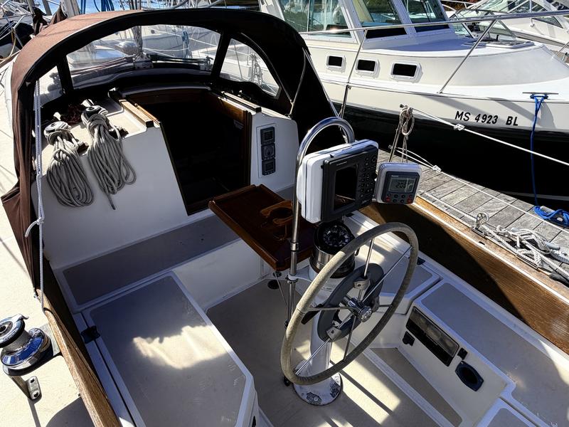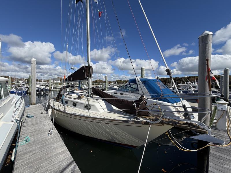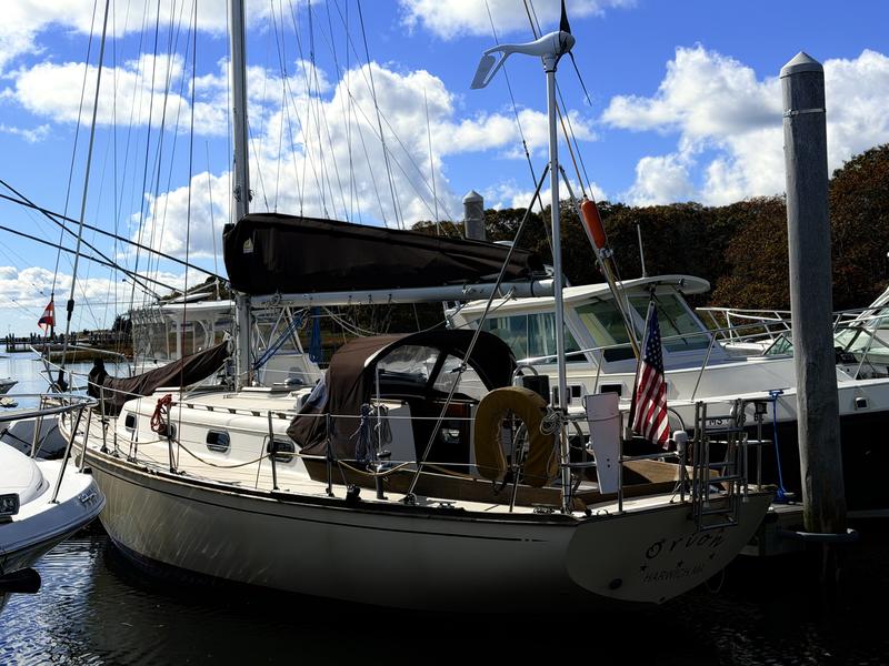 Exterior: Topsides Awlgrip Hull 10mm Epoxy barrier coat New Lewmar 2 speed self tail main winches New Dodger-Sunbrella c Strataglass Windows New Steering Station Cover-Sunbrella Interior: Galley: Refrigeration: Adler Barbour with insulated box Stove & Oven gimbaled: Propane 2 burner SS Sink with H/C pressurized water & auxiliary hand pump Head: SS Sink & Shower with H/C pressurized water Flush Toilet, 20gal Holding Tank & diverter valve Overboard D/C-thru hull valve Bilge Pumps: Manual Whale Gusher in cockpit 12V Rule automatic with manual override Electronics: Furuno Color Radar/Chartplotter mounted in Navpod on Edson Steering Raymarine Autohelm Wheel with Control Head mounted in Navpod on Edson Steering Anchors: 25# CQR with 12 chain 100 Nylon rode 15# Danforth with 100 Nylon rode Sails: Harstick Main 4 batten Harstick Yankee roller furling Harstick Staysail Shore Sails Genoa 150 roller furling Doyle Cradle Cover/Stackpack-Sunbrella New Staysail Cover-Sunbrella Electrical: Batteries: 3 105 AGM House 1 Engine Start 110V Charger with remote metering Link 10 Battery System Monitor Shore Power 30Amp 100V AirX Marine Wind Power with Regulator Solar Power with Regulator High Output Alternator 110Amp with remote cutout New Stereo & Speakers c Remote Wired for cable TV Hot Water 6 gal (110V & Engine powered) Engine: Universal Diesel M25 (21hp) Custom Canvas Winter Cover
