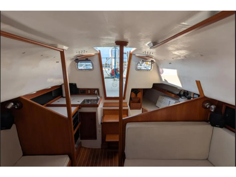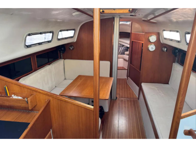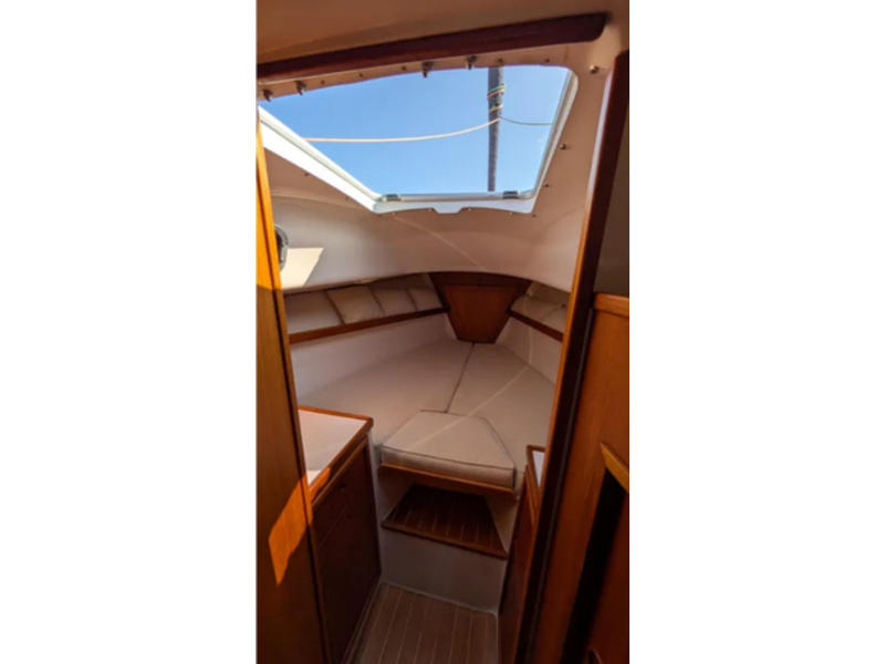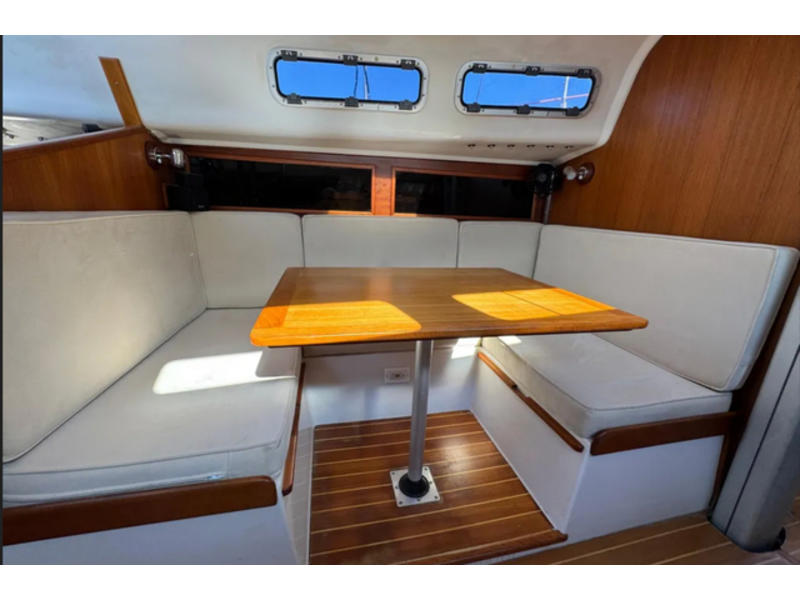Comprehensive interior renewals included a new array of working ports, refurbished woodwork, a teak and holly cabin sole, all new interior and cockpit cushions, an electric freshwater head with dedicated supply tank and new holding tank.