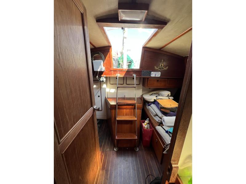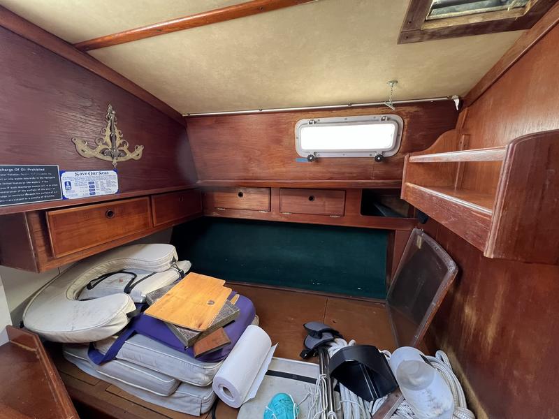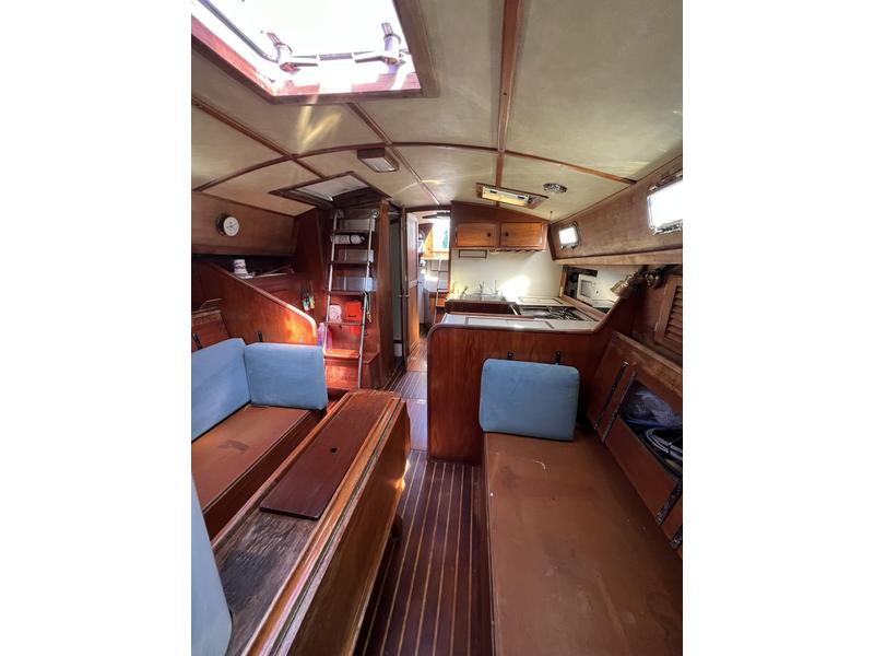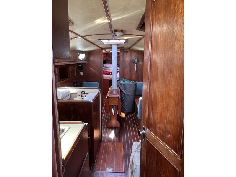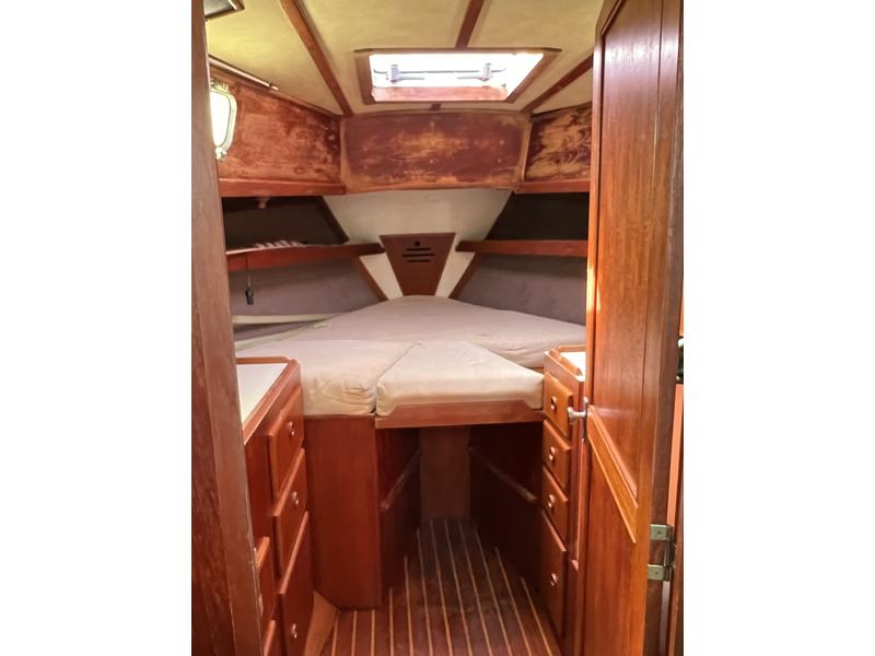 Accommodations: Private V berth cabin w/ sink & cabinets Private double berth aft cabin Salon settees convert into berths Drawer, cabinet, and hanging storage Enclosed mid ship bathroom with shower Teak folding salon table Cabin lighting