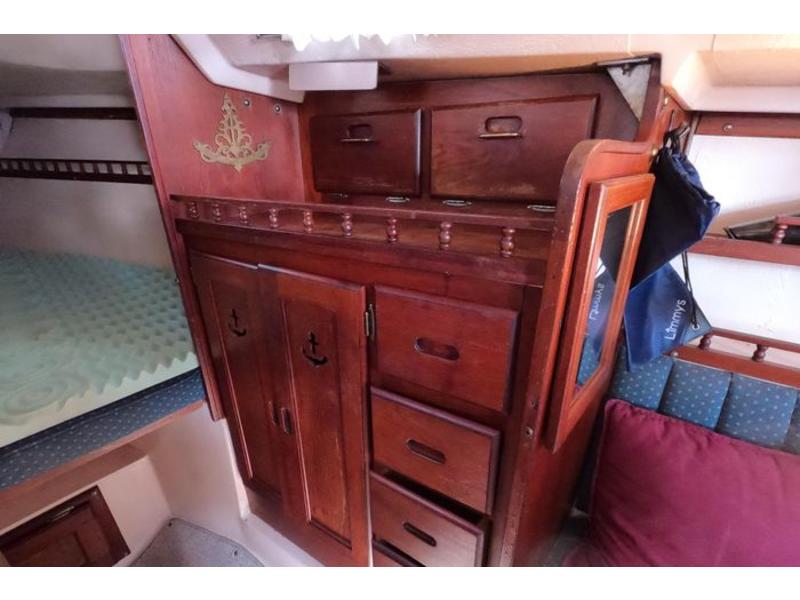 Accommodations Main Salon w/6'4" Headroom Dinette Settee w/Access on 3 Sides, Also Converts to Double Berth Fold A Way Dinette Table Double V Berth Large Open Quarter Berth Head Forward w/Shower & Faucet, Vanity & Storage Hanging Locker to Starboard Across From Head Nav Station Starboard w/Electrical Panel Access Large Storage Areas Under Settees, V Berth & Quarter Berth Galley U-Shaped Galley To Port Double Stainless Steel Sinks Faucet & Large Top Loading Ice Box Water Pump for Galley & Head Compact Refrigerator Microwave Two Burner Electric Stove Top Rigging, Sails & Deck Mast Head Rig w.Bow Sprit...Tall Rig New Main 2017/w Cover, Roller Furling, Reworked 150% Headsail Included New UV & 3 Extra Sails Whisker Pole Lazy Jacks Pedestal Steering w/Compass & Canvas Cover Winch Covers Double Stainless Steel Lifelines w/Bow,Stern Pulpit & Gates SS Boarding Ladder Cockpit Cushions Cockpit Grill Electrical AC/DC Electrical panel Dual Battery Charger Hot Water Heater Shore Power w/Shore Power Cord 110 Outlets Cabin Lighting New Bilge Pump w/Float Switch Engine Service 2017 2017 New Head Installed, New Plugs, Wires and Distributor Cap Carburetor rebuilt 2017 Disclaimer The Company offers the det |