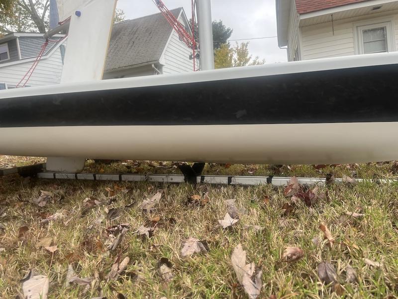 The boat is dry and ready to race/sail/cruise today. It has, consistent with the age of the boat, cosmetic dings and remarkably few cosmetic scratches on the bottom.