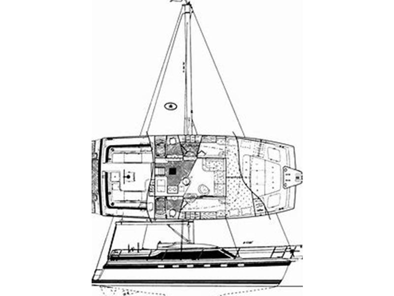 The Packet Cat 35 is a rather revolutionary departure from the typical sailing catamaran. It features a unique DeltaPod Bow. This partially submerged, central deep V plays a full-time, active role controlling pitch and wave action underway. Its large reserve buoyancy dramatically increases both forward and diagonal stability. The central, concave wake generated by the pod effectively increases bridgedeck clearance and prevents significant wave action between the hulls. Residual wave action behind this wake is contained under the raised bridgedeck further aft, combining to virtually eliminate the discomfort and harshness of wave impacts under the central area. The full foredeck, wide side decks, inboard shrouds and full rail enclosure provide easy and secure access to all points on deck. A large, built-in padded foredeck lounge with hinged backrest offers a new dimension in luxury and convenience. The wrap-around cockpit offers a deluxe steering console with folding table and controls for the twin diesels, and a raised helm seat, giving the skipper an unobstructed view while remaining in the center of cockpit activity. Main and jib sheets are nearby for convenient singlehanded sail trim. The large "tunnel" under the cockpit and between the hulls provides a convenient, sheltered "garage" for parking a dinghy when not underway. With an innovative and well-appointed interior, there is a feeling of space and natural "flow" along with a sense of comfort and style. The central cabin's settee quickly converts to a double berth with a simple pullout extension. Excellent ventilation and natural light are provided through five overhead hatches, the wraparound deck house windows, and the companionway enclosure and galley serve-through window. The open U-shaped arrangement in the aft main cabin area is located convenient to both the salon and cockpit, yet is out of interior traffic patterns. Complete galley facilities will satisfy both the liveaboard or weekend escape lifestyles. |