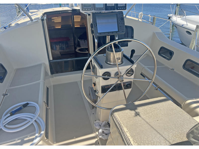 Owner's version with 2 cabin layout Two Raritan manual heads, y-valve and holding tank Each head includes a shower F.G. Flooring Two cabinets Three hanging lockers Nav station Hot water heater Two A/C Dometic units - 10k and 16k BTU, 2024 12v Cabin fans 12V Refrigerator/Freezer, 2024 Stainless steel sink 2-burner stove w/propane oven Microwave oven Cockpit seating w Cockpit cushions Deck shower Danforth primary anchor, chain and rode Delta secondary anchor, chain and rode Maxwell windlass Swim platform Lewmar ST30 cockpit winch Lewmar oveerhead hatches w/hinged screens SS ports w/screens Bimini top, 2025 Bottom job, 09/2024Garmin 3010C GPS plotter Icom VHF IC-M402 Garmin radar, needs service Simrad pilot, needs service Ritchie SD-5 compass Raymarine ST60 depth Raymarine ST60 speed West Marine stereo Mast head wind and speed, not working Twin Yanmar 3GM30F engines Two shore power cords, 2024 Xantrex Freedom 458 inverter/charger Battery monitoring system Two bilge pumps Four Group 27 batteries