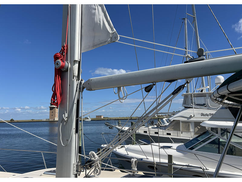 In the mast furling main Genoa on Harken furler, 2024 Cruising spinnaker Aluminum mast Running rigging, 2024 Staylock on rigging