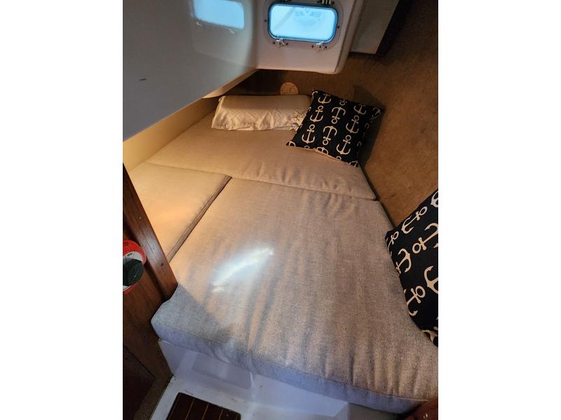 Key maintenance and upgrades include: 1. Dripless stuffing box 2024 2. Keel painted 2024 3. New air conditioner capacitor 2025 (blows nice and cold) 4. New aft cabin mattress 2025