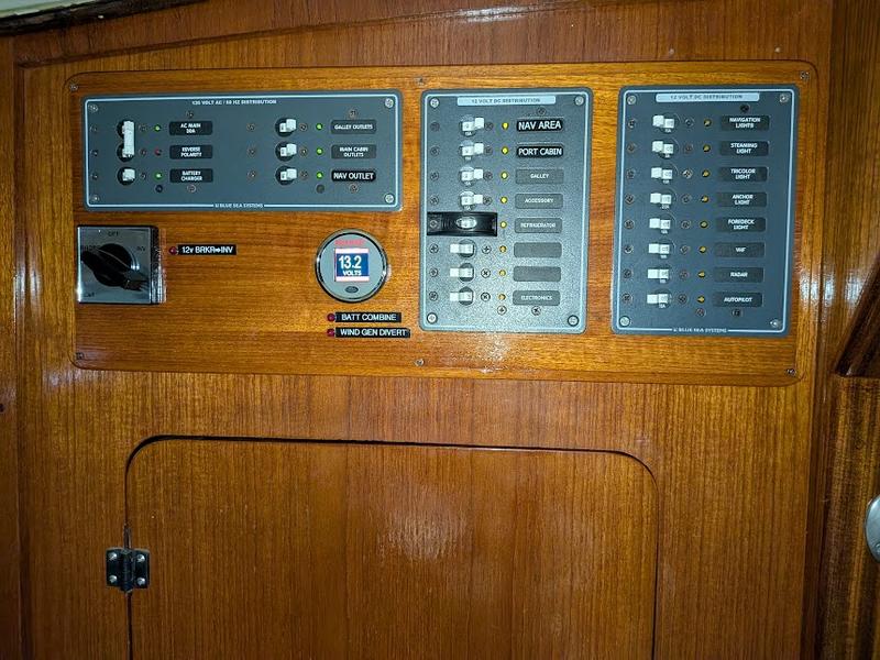 -New standing rigging, including turnbuckles & chainplates (November 2010) -Profurl NC42 furler -Double spreader rig -Genoa, yankee, staysail, storm staysail, asym spinnaker, mainsail -Lewmar 43 genoa winches, Barient 18 halyard winch -Lofrans Kobra windlass (serviced February 2025) -Primary anchor, Manson Supreme 45 lbs, 90 5/16 G4 chain, 100 5/8 nylon -Secondary anchor, Fortress FX-23, 25 5/16 G4 chain, 100 5/8 nylon -Stern anchor #1, Fortress FX-16, 9 5/16 G4 chain, 100 1/2 nylon -Stern anchor #2, Fortress FX-16, 20 3/8 chain, 100 1/2 nylon -500 watts solar -3 group 31 12 volt gel batteries (house), group 27 engine start battery -40 amp alternator w/external regulator -Marine Kinetix wind generator -Yanmar 3GM-F, 3039 hrs -Sillette drive (refurbished February 2025) -Highfield classic aluminum RIB -Mercury 6 HP 4 stroke outboard -Force 10 2 burner stove/oven w/infrared broiler -2 10 lb aluminum propane tanks (new valves Feb 2025) -Magma propane grill w/aluminum 6 lb propane tank -Poo Loo composting toilet -Powersurvivor 40E 12 volt watermaker (membrane biocide August 10, 2025) -Raymarine ST6001 autopilot (hydraulic) -Autohelm 3000 wheel pilot (backup) -Six Caframo Ultimate soft blade fans -Singer heavy duty sewing machine, model HD6380M -Mast Mate nylon mast ladder -Explorer Charts for Bahamas -Charts for east coast US -spare alternator -spare yanmar starter -icom 25 watt VHF IC-M412 -standard horizon 25 watt VHF GX2200 ais/gps -standard horizon handheld VHF HX 260S -Autohelm knotlog -Garmin depth sounder (port depth) -Garmin GPSmap 541s depth sounder/ chartplotter (starboard depth) -Lowrance hook 7 depth sounder/chartplotter (stern depth) -raymarine RL70c chartplotter/ radar -Garmin GPSmap 541s depth sounder/ chartplotter (settee) -SR 161 AIS receiver (USB/serial) -GPS receiver puck (USB) -BOSS 616UAB stereo bluetooth radio -Renogy 2000 watt sine wave inverter (new 2025) -Xantrex truecharge 20 battery charger |
