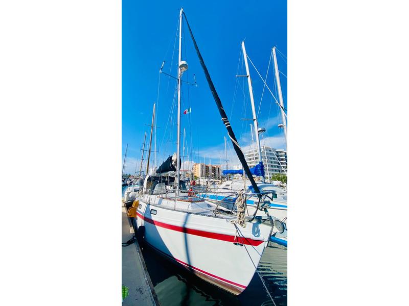 Solid fiberglass hull with fin keel and skeg-mounted rudder. Beta Marine 25 hp diesel engine (approx. 1,000 hours). Bronze 3-blade propeller. Comfortable and classic cruising interior. Main (on boom w/cover) and jib (on furling system) Eliot Patterson sails. Cruise equipped. Docked in a full-service marina in Mazatln.