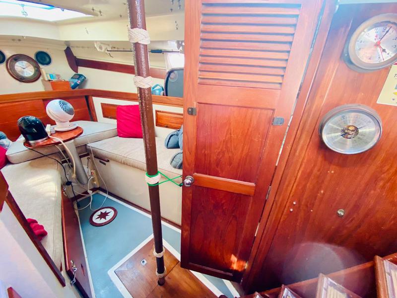 This Coronado 32 features a center cockpit design that provides a spacious aft cabin with its own private head, an uncommon layout for a boat this size. Below the waterline, she carries a fin keel combined with a skeg-mounted rudder, a configuration that offers excellent maneuverability and solid directional control. The fin keel improves sailing responsiveness and performance, while the skeg-mounted rudder adds protection and structural strengthmaking her well suited for offshore passages or coastal cruising.