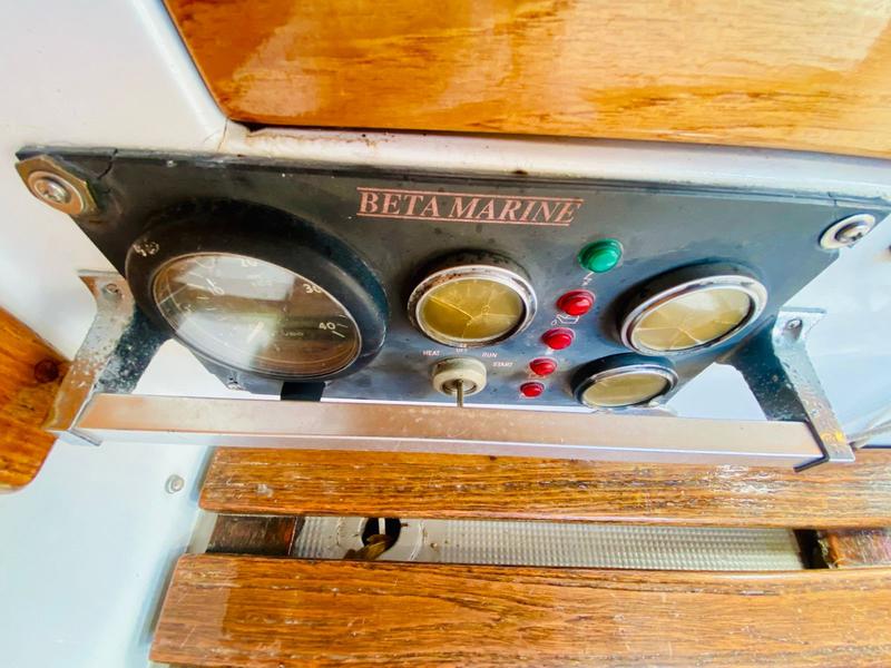 A 25 hp Beta Marine diesel engine with approximately 1,000 hours delivers reliable power underway. A bronze three-blade propeller ensures smooth propulsion and responsive handling. The solid fiberglass hull adds long-term durability, and her straightforward systems reduce maintenance while enhancing reliabilityperfect for cruisers who value simplicity.