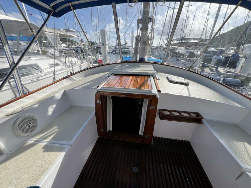 The center cockpit provides an excellent sense of safety and protection offshore, while the two companionwaysone to the aft cabin and one to the main salonoffer a comfortable and private layout, ideal for sailing with family or friends.