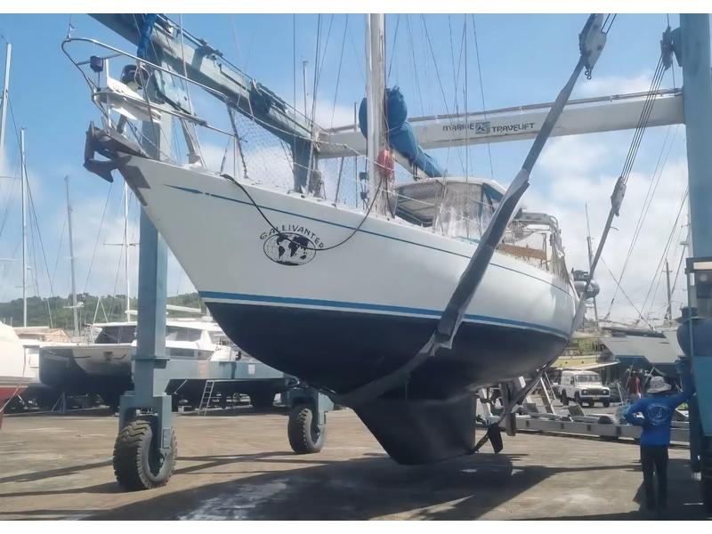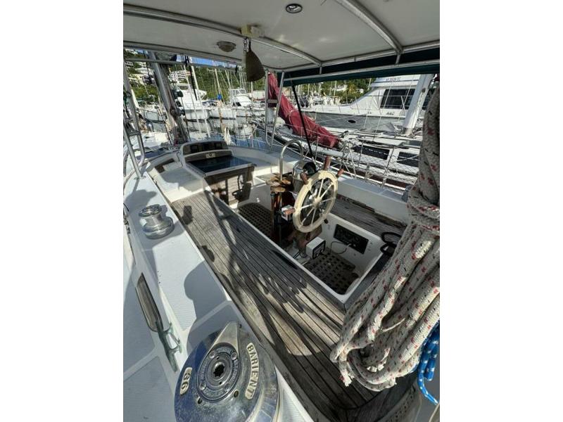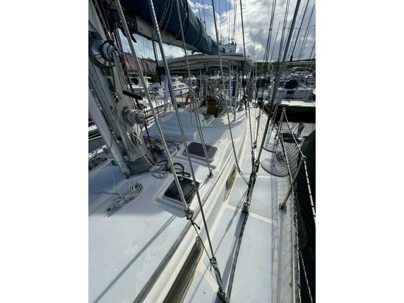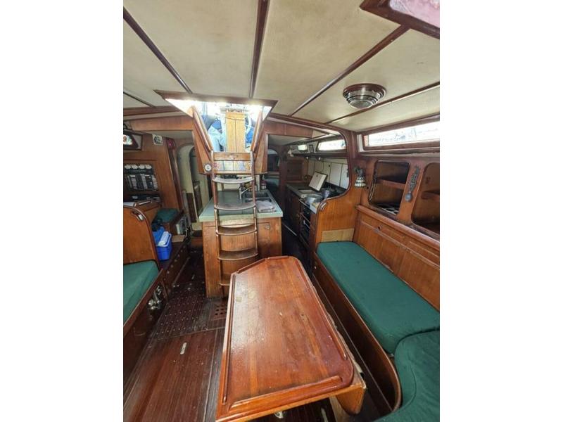 The solid fiberglass hull, reinforced internal structure, and deep lead ballast deliver exceptional durability and a stable, sea-kindly motion. A cutter rig provides versatile sail-handling across varied conditions, complemented by through-bolted deck hardware and a well-engineered deck layout for reliable offshore performance.