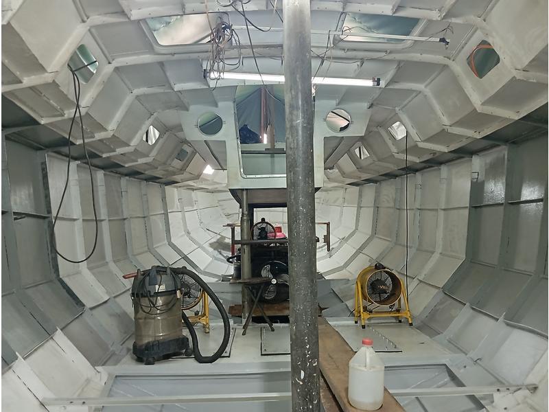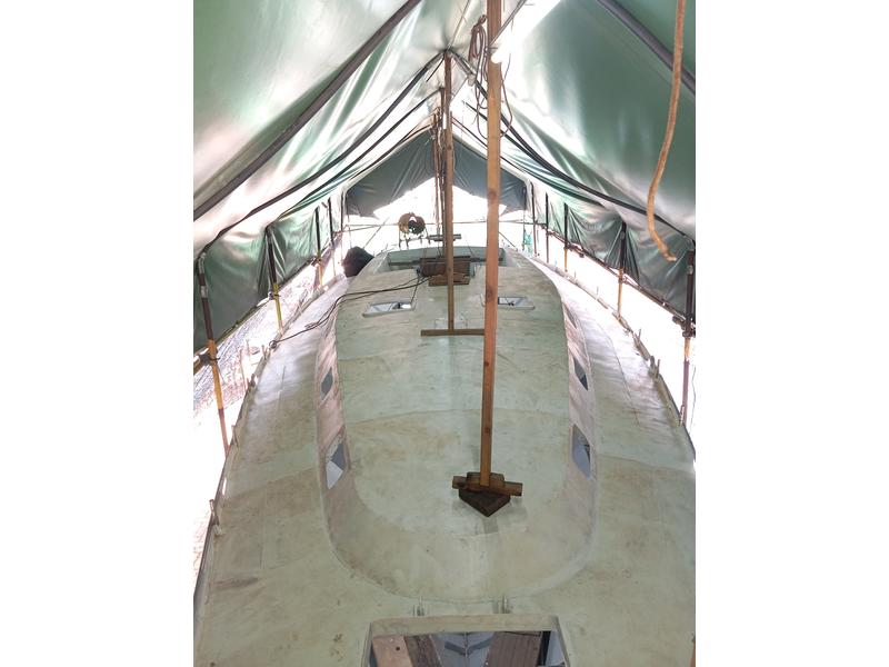 We rebuilt the deck, put a new transom, new plates for the hull where needed.