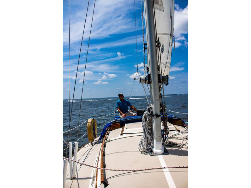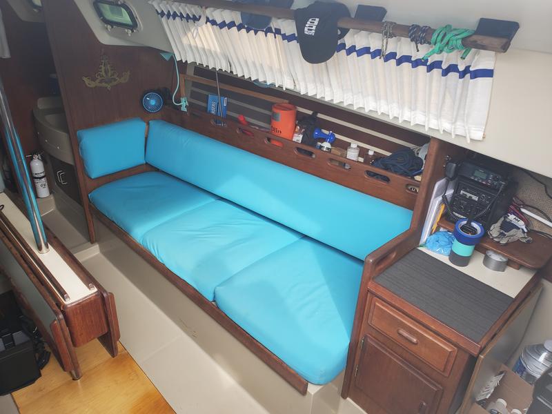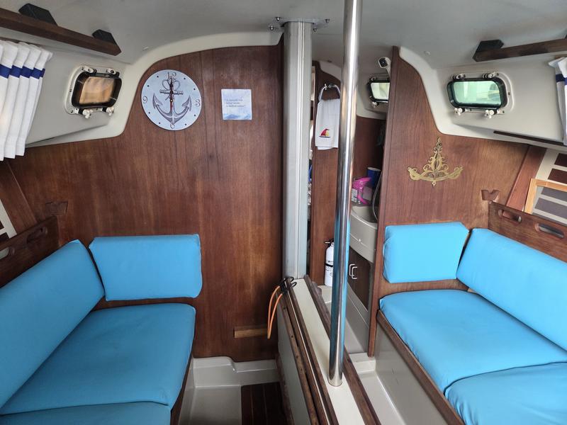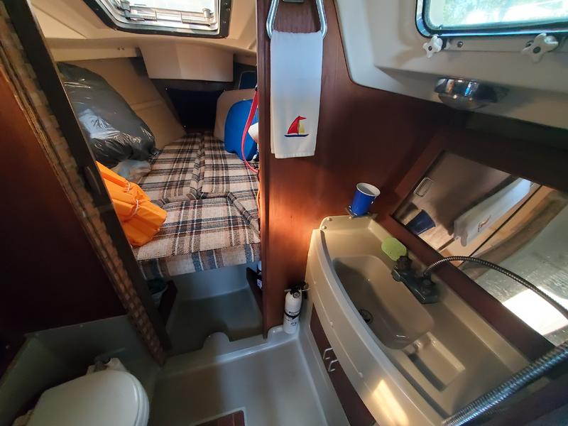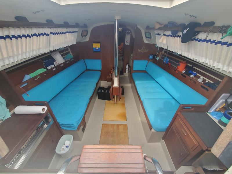 Hot and cold pressure water 6 gallon hot water heater Alcohol stove Head VHF radio with DSC - VHF is brand new as of July 2024 Stereo Galley sink and head sink with shower Lazy jacks and two reef points in the Main Furling Genoa 25 gallon water tank 3 batteries 7 winches 18 gallon fuel tank Two anchors Ice Box Autopilot - Raymarine ST2000 tiller pilot with homemade adaptation to enable it for use with the wheel helm. Cockpit cushions Two Pushpit seats with cushions 6 Life Jackets All USCG required safety gear - it has had the USCG Aux Boat Safety Inspection in 2023, 2024 and 2025 with no discrepancies any of those years. 10 watt solar panel and solar controller set up to charge the autopilot battery