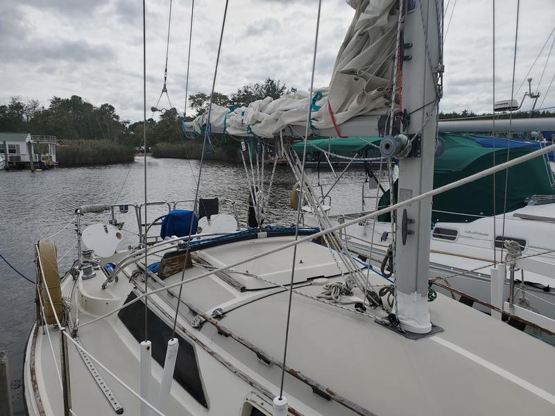 The boat is in excellent condition and is currently out of the water in Forked River, NJ. It has mainsail and nearly new 150% Genoa. The boat was repowered by the previous owner and now has a Yanmar 2YM15 with low hours. It has a shoal draft keel which makes it an excellent choice for sailing the Barnegat Bay, getting into good anchorages near shore for overnight stays, and makes it easier to navigate the Oyster Creek channel to Barnegat Inlet. We upgraded the navigation system four years ago with a brand new Raymarine Element 9 Chartplotter/MFD and Sonar transducer and I keep the software and charts up to date with an active subscription to Navionics charts.