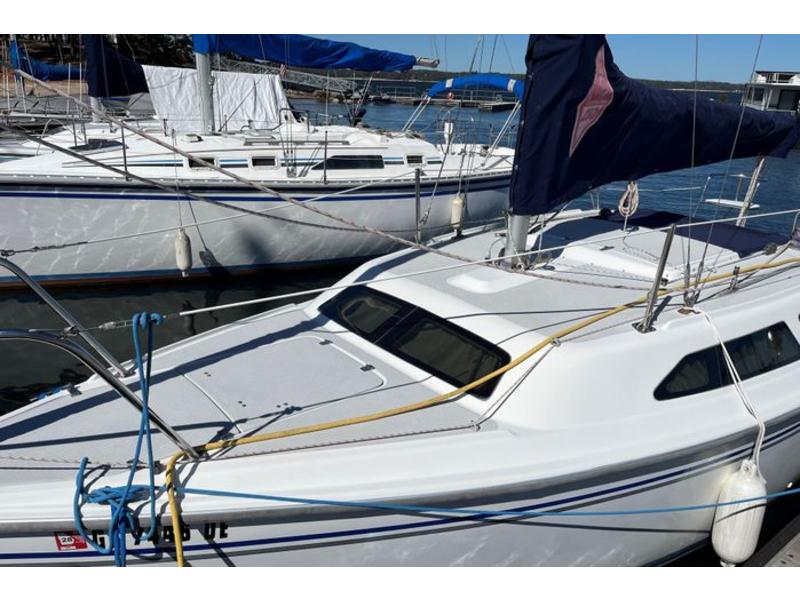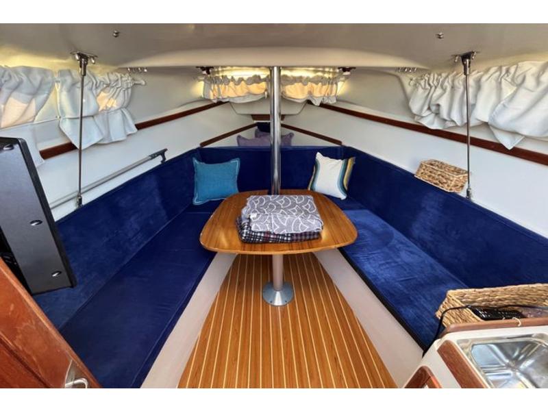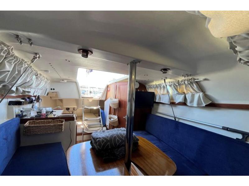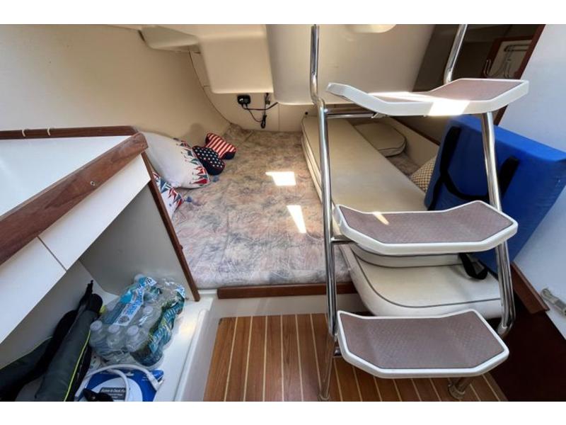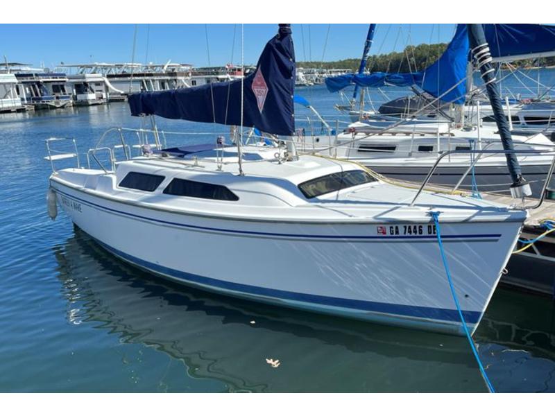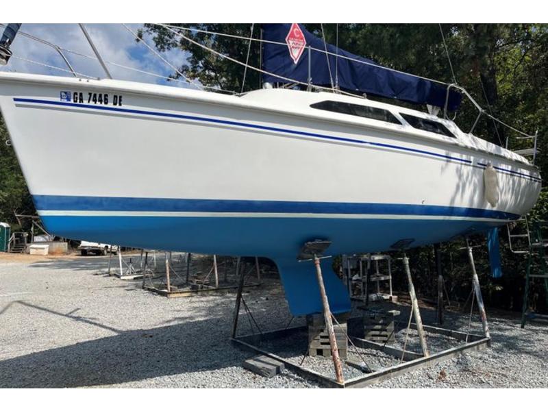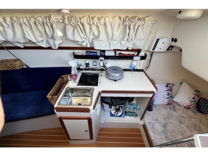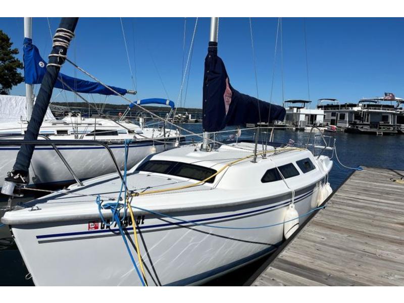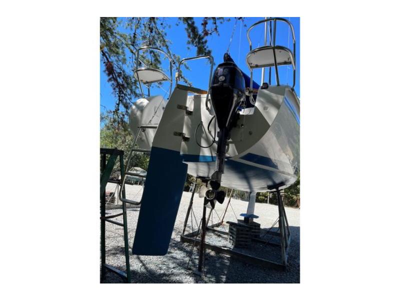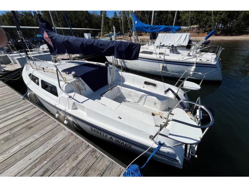 Accommodations 5'5" Headroom w/Pop-Top Down & 7'1" Headroom w/Pop-Top Up Double Berths Forward & Aft Removable Cabin Table Hanging Locker Galley w/Sink, Fresh Water Storage Tank & Removable Ice Chest Private Enclosed Head Compartment Located Aft, Paper Holder, Storage Compartment, Sink & Vanity Electric flush porta-potti Interior in excellent condition. Electrical 12 Volt D.C Electrical System w/Control Panel Cabin Lights Navigation Lights Shore Power w/110 Outlets w/ on board battery charging Spars/Rigging/Deck Hardware New standing rigging in 2018 New running rigging in 2021 Good, serviceable main sail Very good 110% jib with (newer) sail cover Wing Keel Headsail Roller Furling system Anodized Aluminum Mast & Boom Internal Halyards Pivoting Mast Step Boom Vang Genoa Tracks & Blocks on Adjustable Cars 2 Primary Self Tailing Winches Cockpit Coaming Compartments 2 Cockpit Lockers Stern Rail Seats Self-Bailing Cockpit Opening Forward Hatch Stainless Steel Swim Ladder Stainless Steel Bow Pulpit & Stern Pulpit Lifelines w/Stanchions Trailer Bow Eye, Mooring Cleats, Anchor Locker New bottom September 2023 (Interlux Micron CSC). Buffed hull at that time as well. Exterior in good to ver |