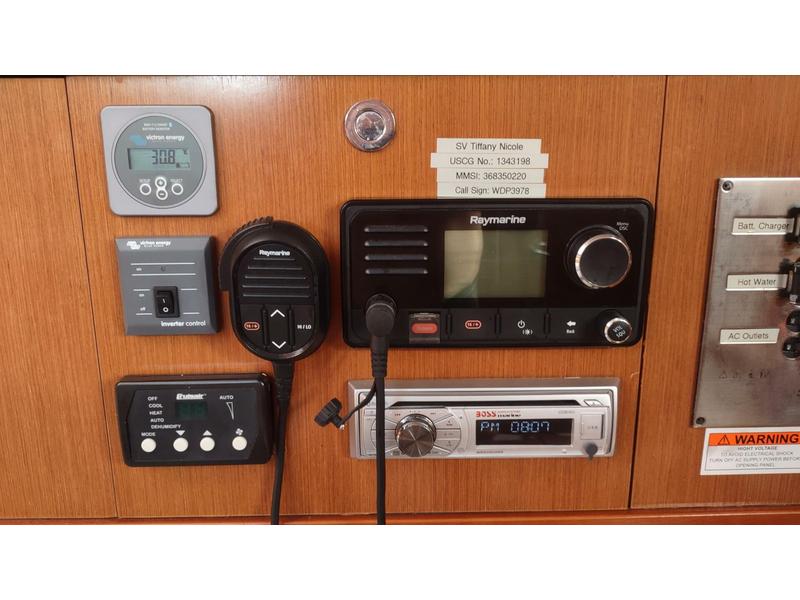 Her navigation and electronics are modern, reliable, and recently updated. Equipment includes a Raymarine ST7000 plus autopilot with a new cockpit display, Raymarine depth and wind instruments, a twelve inch Raymarine chartplotter, Raymarine digital radar, and Sailserver for automatic electronic logging, live tracking, and an