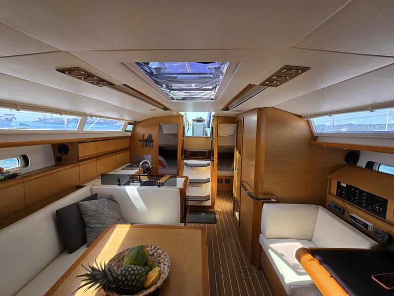 Designed by Philippe Briand, the Sun Odyssey 409 is celebrated for its combination of stability, performance, and ease of handling. Airbender sails exceptionally well with responsive steering and a powerful yet manageable rig. All lines are led aft to the cockpit, allowing short-handed sailing or easy operation as a couple. She delivers confidence at sea without sacrificing the enjoyment of day-to-day sailing.