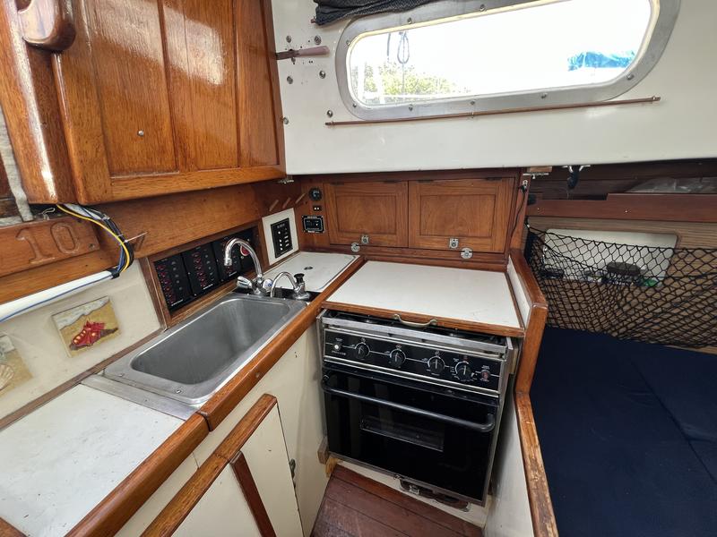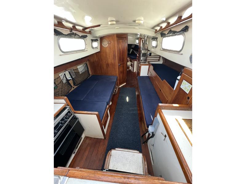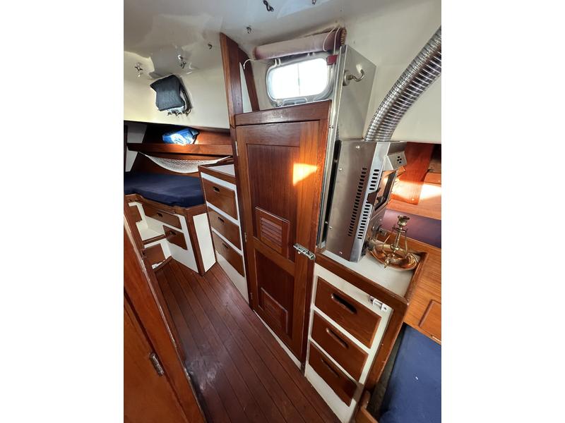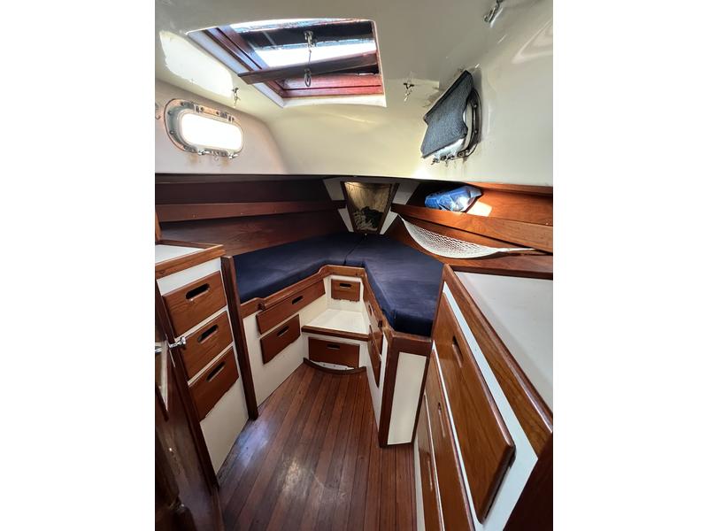 Trinity is ready to sail. Her roomy interior has plenty of ports that open for great ventilation and light. She has a double entry spacious bathroom, private forward cabin, foldout dinning table seats 8 and drops down to a double birth, and opposite side midship single bunk and bench seating. She sleeps 5 and offers tons of storage and has a few hanging closets and lots of drawers. The hard wood cabinetry and flooring is very high quality. Trinitys outside looks nice enough for some but with a complete varnish job, new sail covers, new winch covers, and a good pressure wash and some paint, shes a real standout. Once all that is done, youve tripled your resale value.