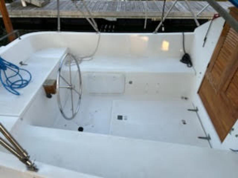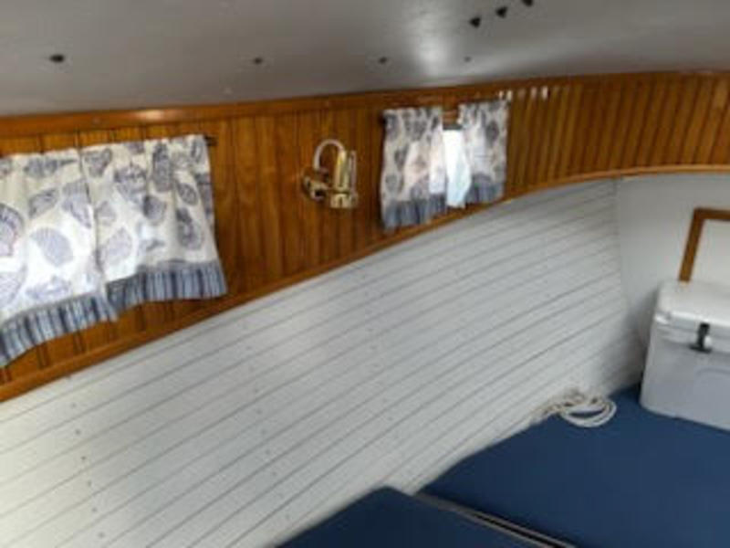 Bittersweet feeling as we put our catboat Reliance up for adoption. She is hull #2 and launched in the late 90s. Located in Norfolk VA (sailed her up from NC last year). She has a roomy cabin, sleeping 3, with an enclosed head and good headroom. We refurbished her in the past couple of years, and she is a pleasure to sail. Roomy cockpit, easy handling.