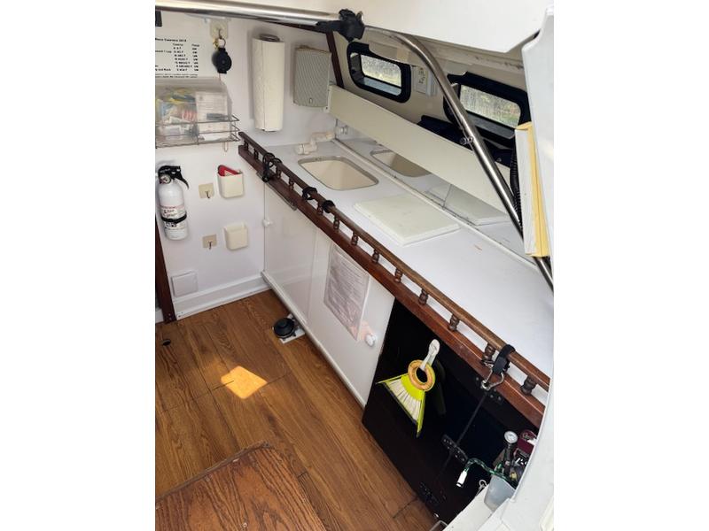* Galley with sink and foot pump freshwater system