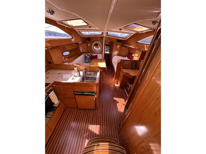 This beauty includes a newer in-mast furling mainsail & furling genoa, Raymarine electronics, dual wheel steering, walk through transom, "drop down" swim platform, custom Tigerwood cockpit table with drop leaves and stowage, wind generator, full cockpit enclosure, 2 refrigeration units (one can be used exclusively as freezer), Inverter 1800 watt, 2 solar panels (200 watt each), Webasto diesel cabin heat, bow thruster and MORE. |