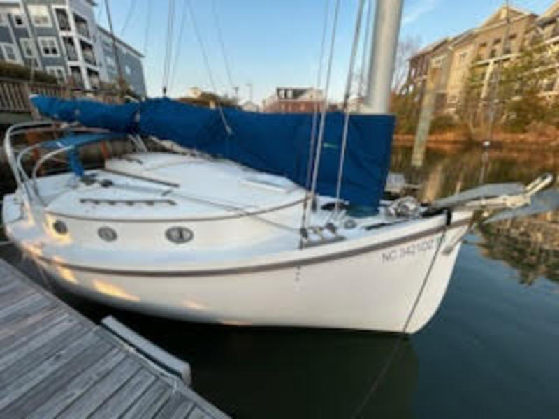 Bittersweet feeling as we put our catboat Reliance up for adoption. She is hull #2 and launched in the late 90s. Located in Norfolk VA (sailed her up from NC last year). She has a roomy cabin, sleeping 3, with an enclosed head and good headroom. We refurbished her in the past couple of years, and she is a pleasure to sail. Roomy cockpit, easy handling.