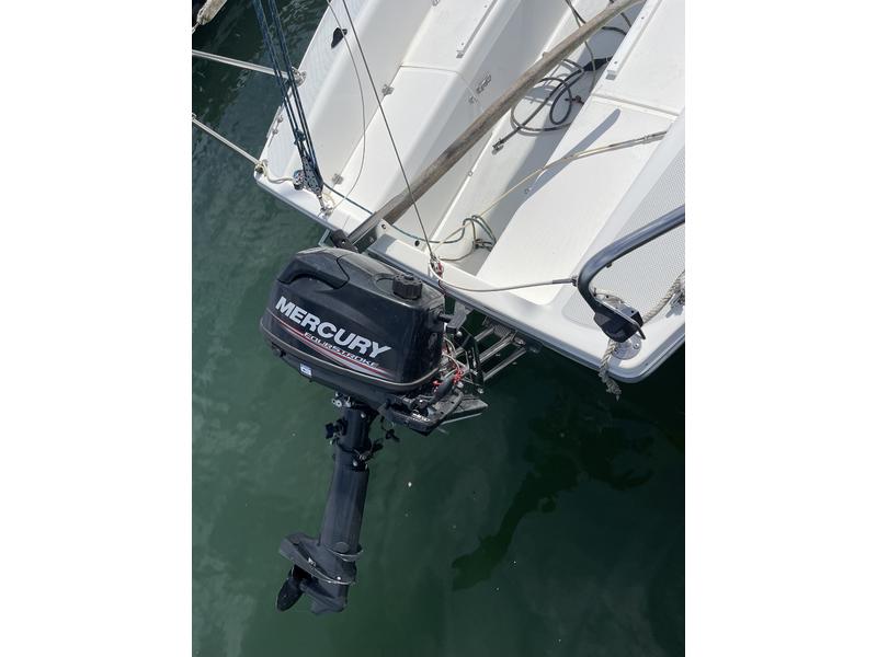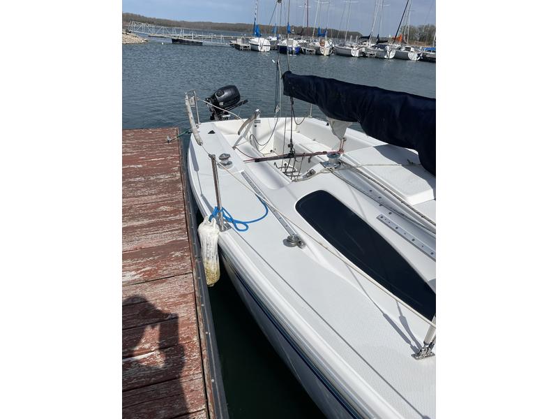 Halyards led aft to cabin Dacron Mainsail with battens & reef points 150 Furling Genoa with UV panel Performance Package: Symmetrical Spinnaker Gear including Pole, Sheets, Foreguy and halyard lead aft to cockpit Main and Jib halyard winches on cabin top, with clam, cleats, adjustable backstay White vinyl Interior cushions and cockpit cushions Stern mounted swim ladder adjustable outboard bracket Canvas Package with Mainsail cover, winch covers,tiller cover |
