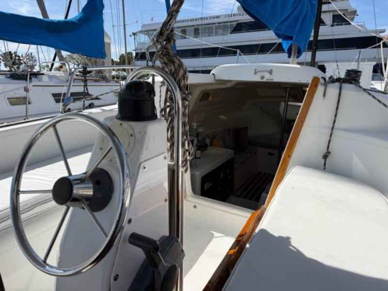 With this very versatile beautifully designed sailboat you can avoid expensive marina docking fees and also explore inland waterways. With the adjustable swing keel and rudders no harbor or lake is too shallow. The mast can be raised and lowered in just a few minutes.